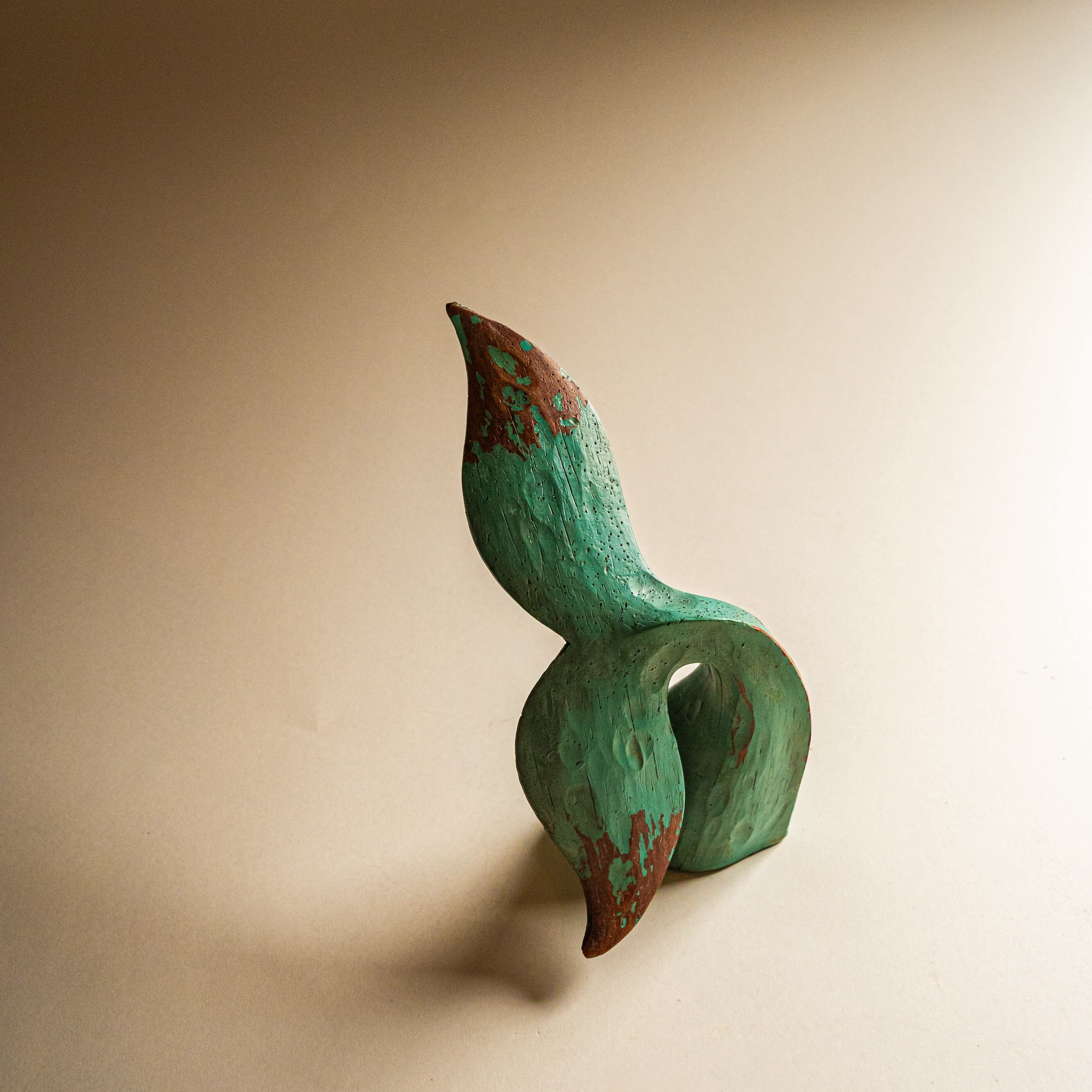 木彫りの風合いとアンティーク調仕上げのホエールテールのオーナメント。