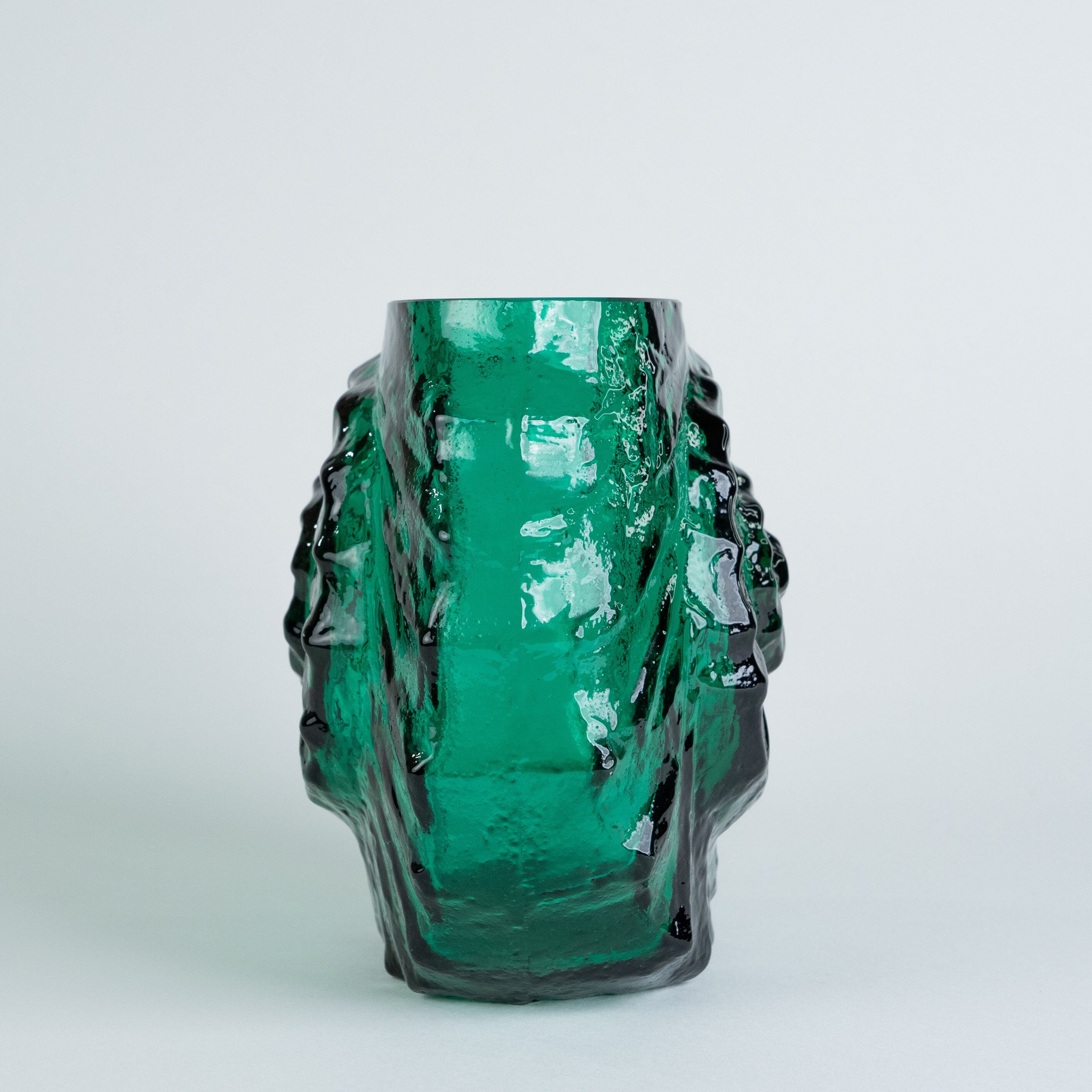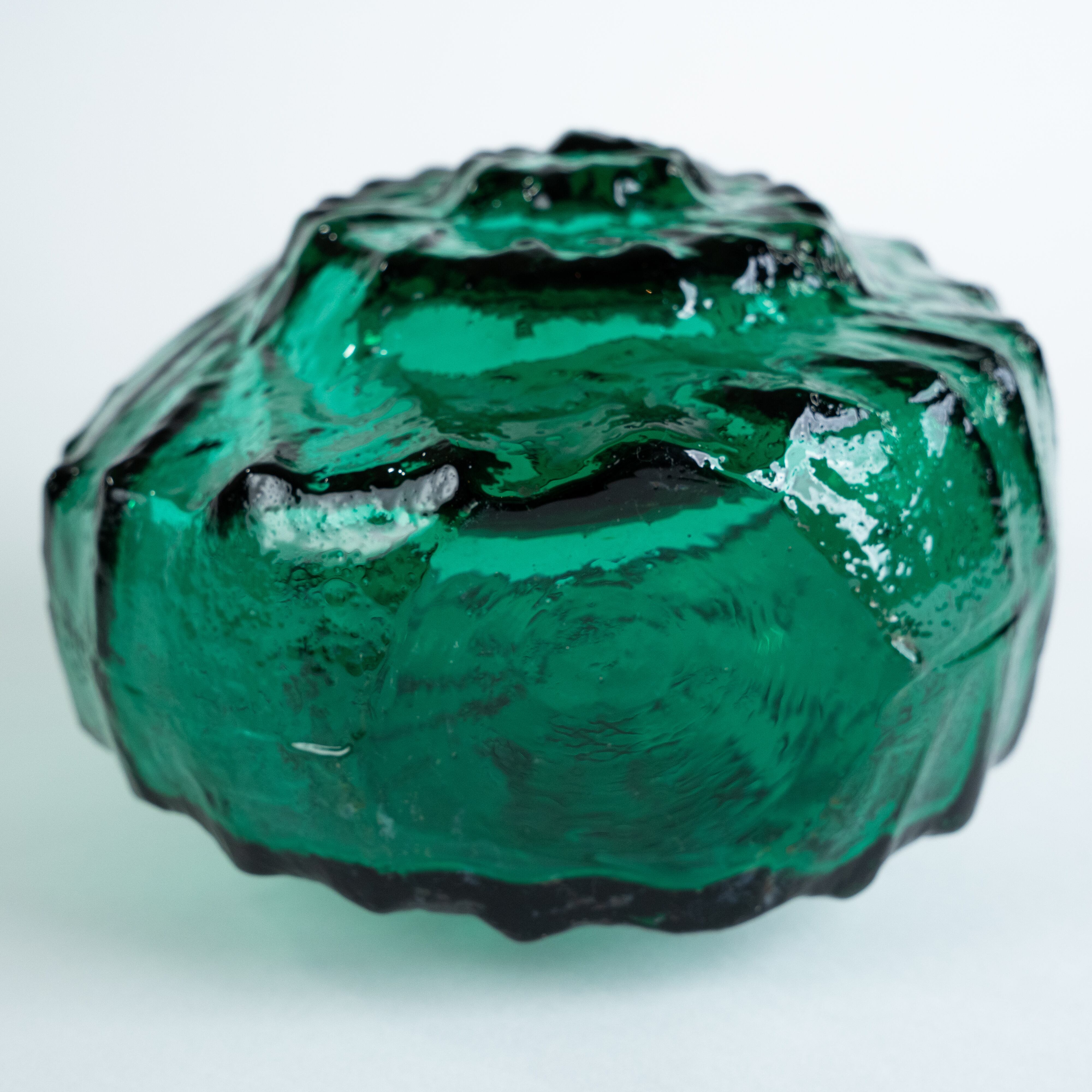 アンモナイト型の珍しい花器。年代生産国ともに不明ですが、個性的なデザインと美しいエメラルドグリーンに目を奪われます。