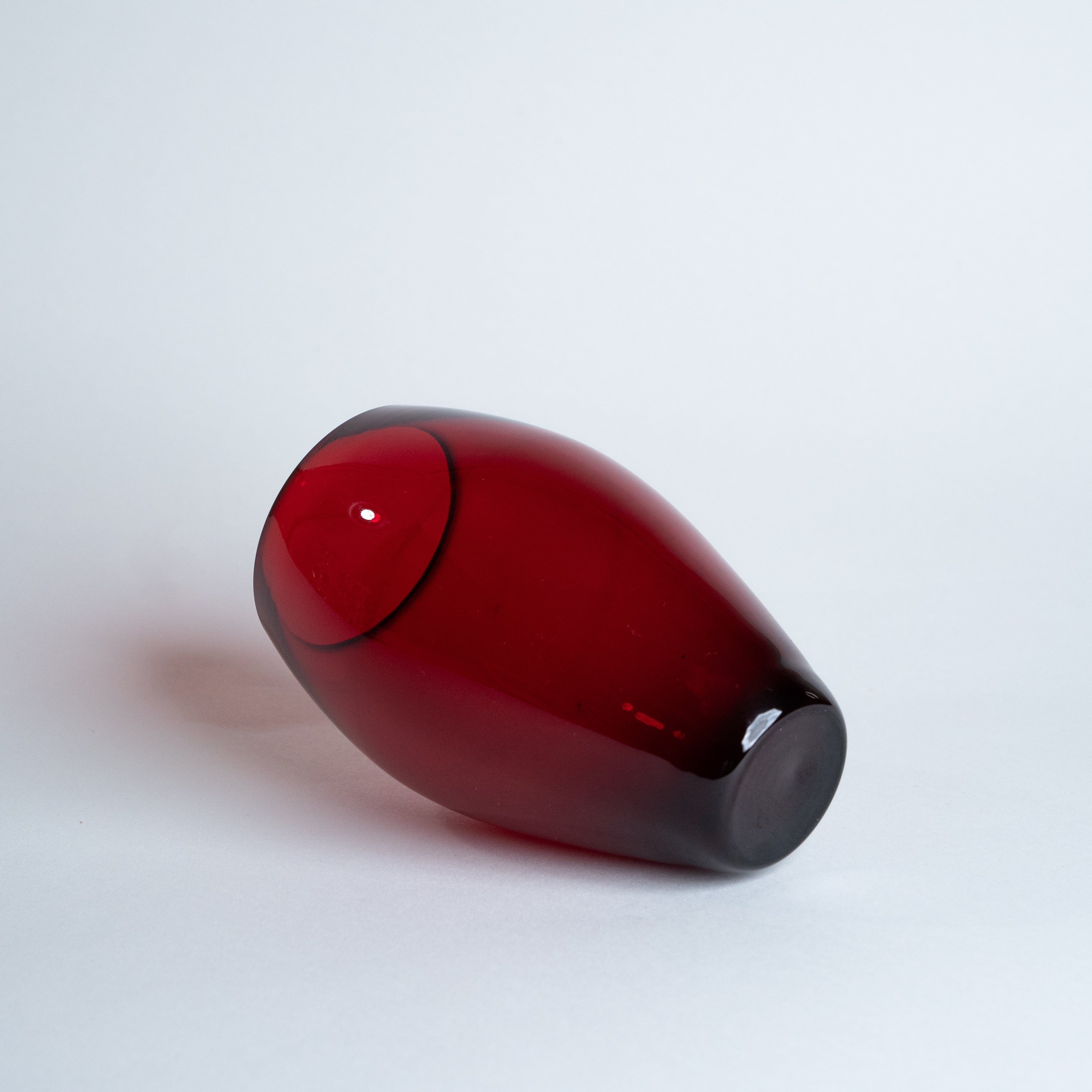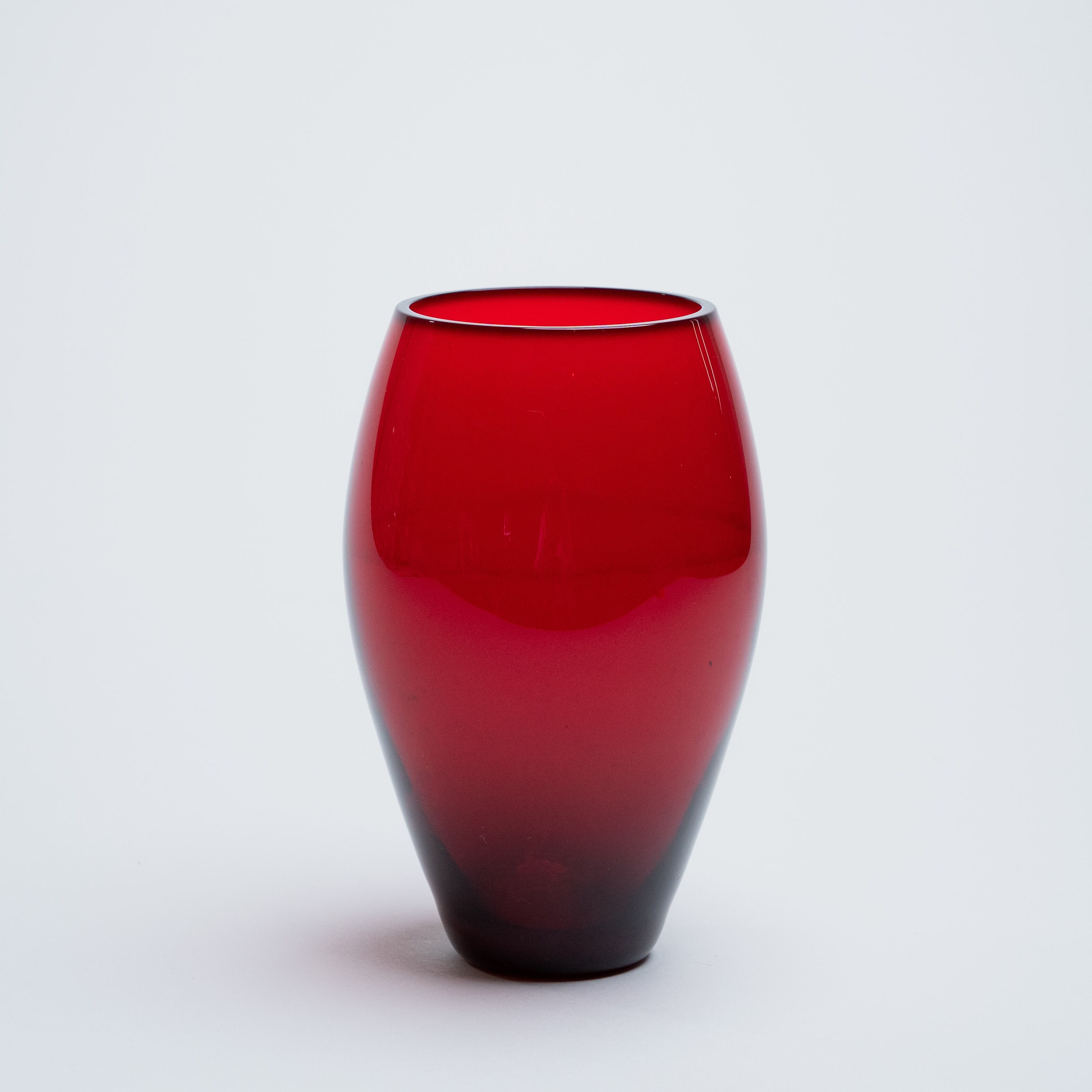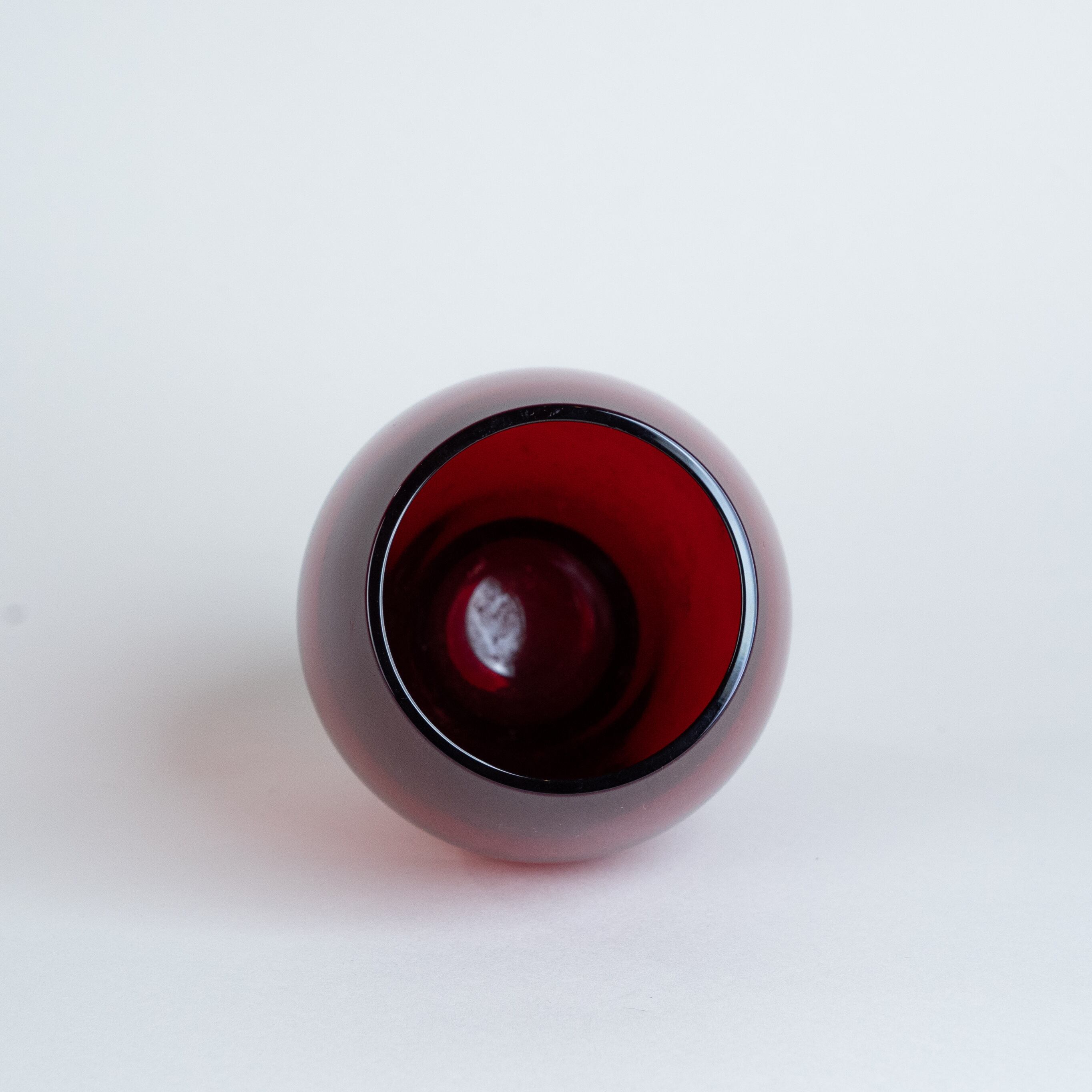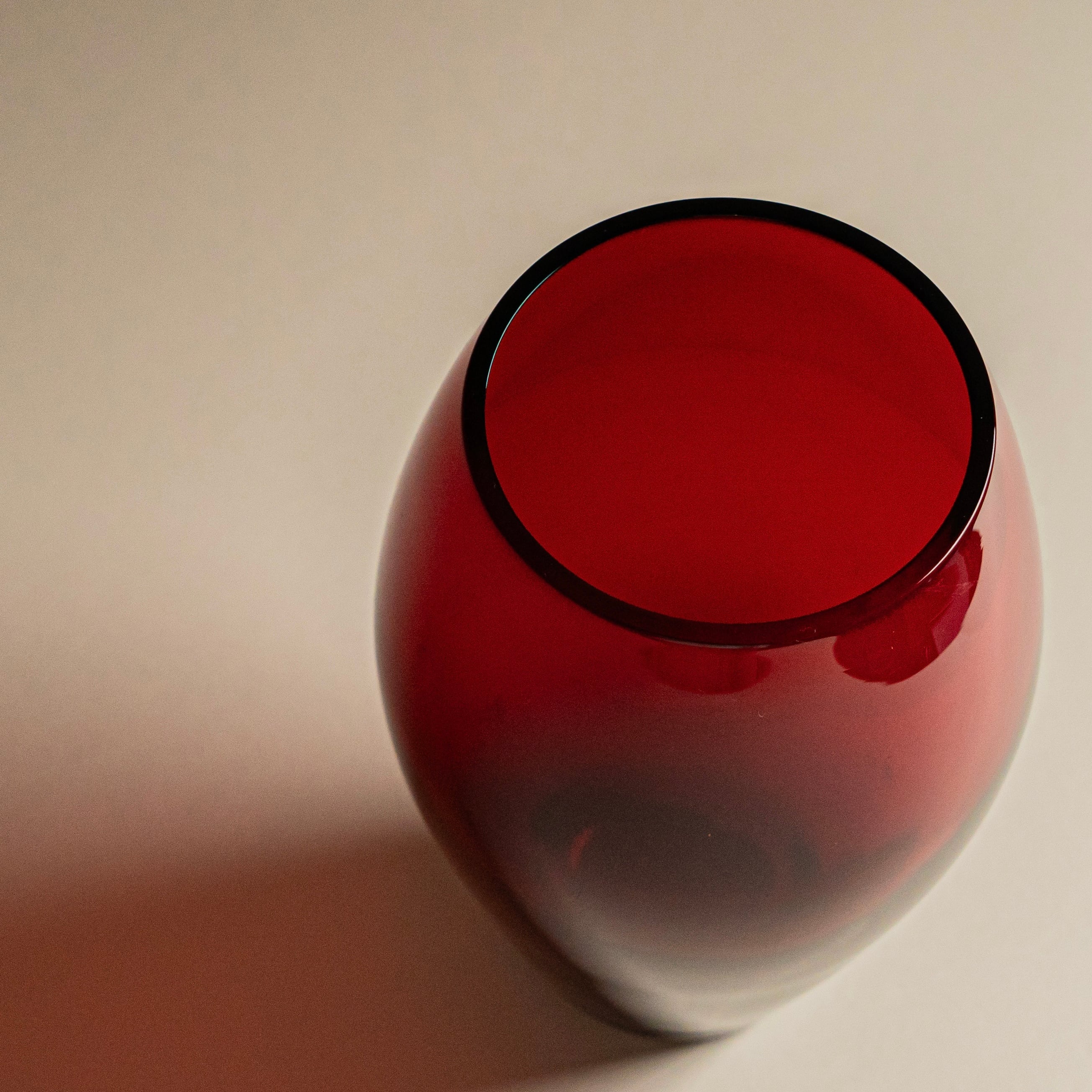 小ぶりでシンプルなデザインながらもその鮮やかな深紅色に引き込まれるフラワーベース。