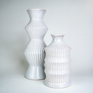 幾何学的で存在感がありながら様々なお花やグリーンを引き立ててくれるフラワーベース。