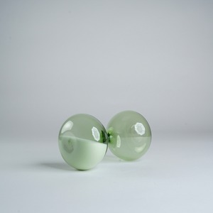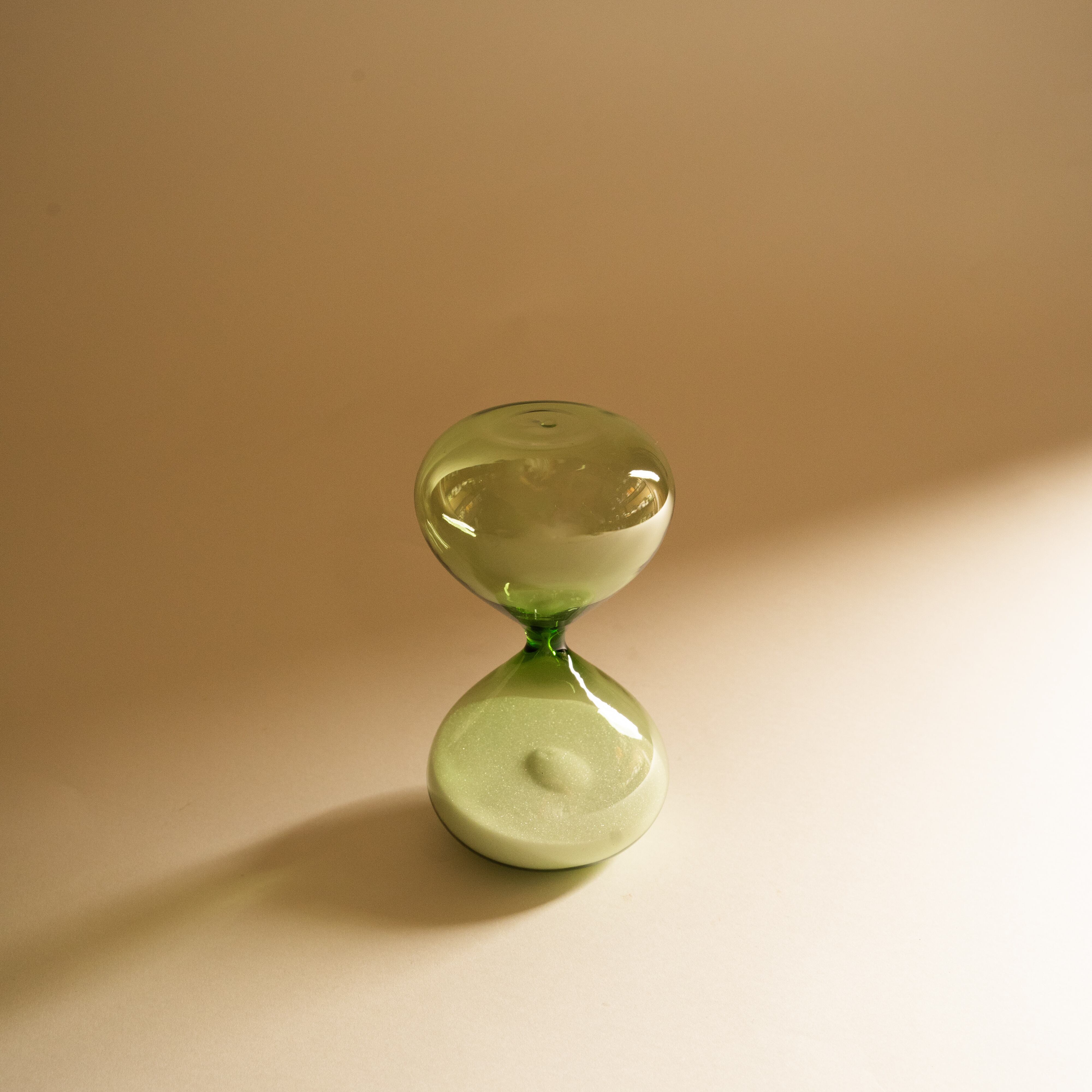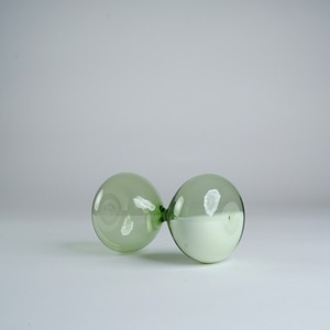 ライムグリーンのガラスと丸みのあるフォルムが可愛い砂時計。