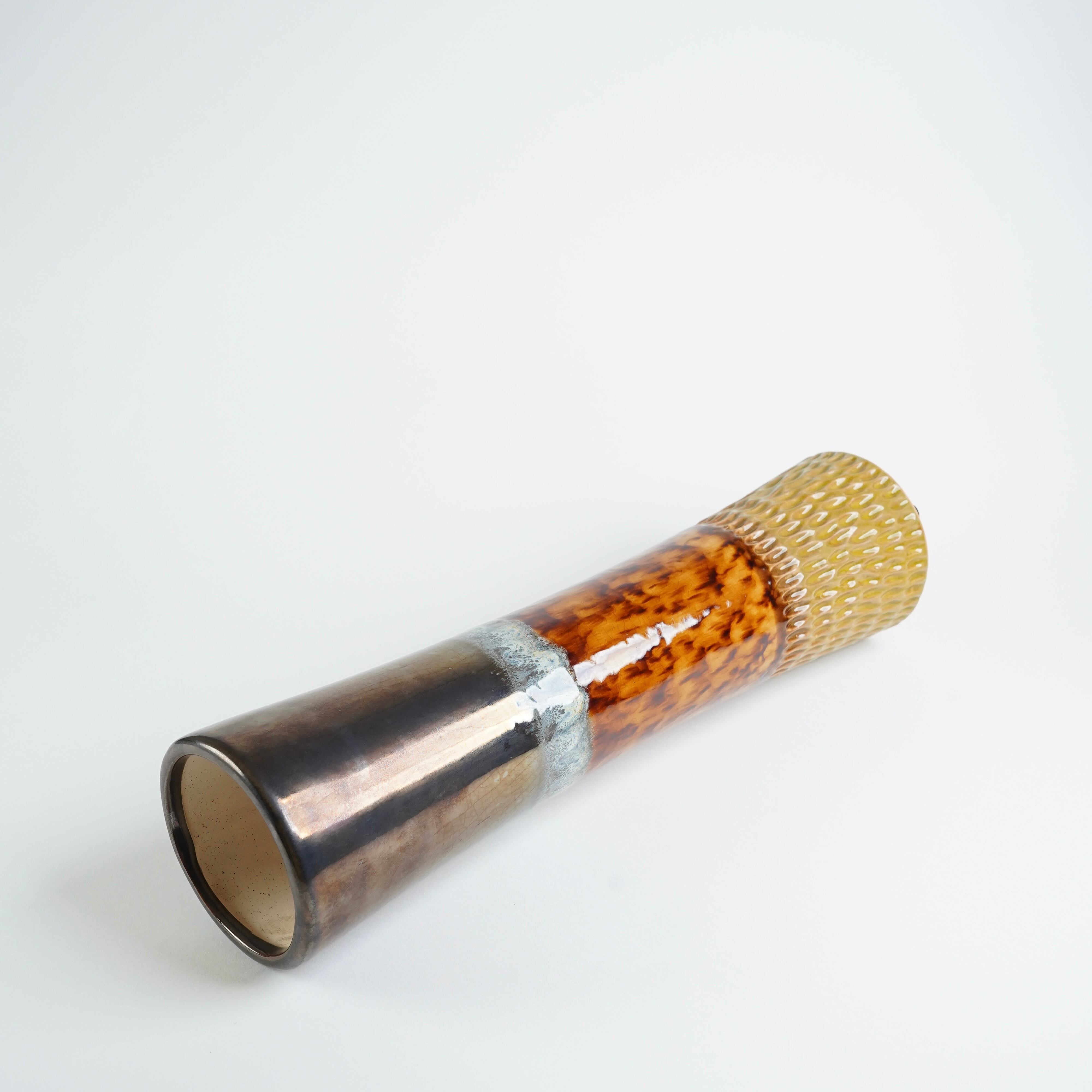 落ち着いた色味でありながら、大胆なデザインが目を引くフラワーベース。