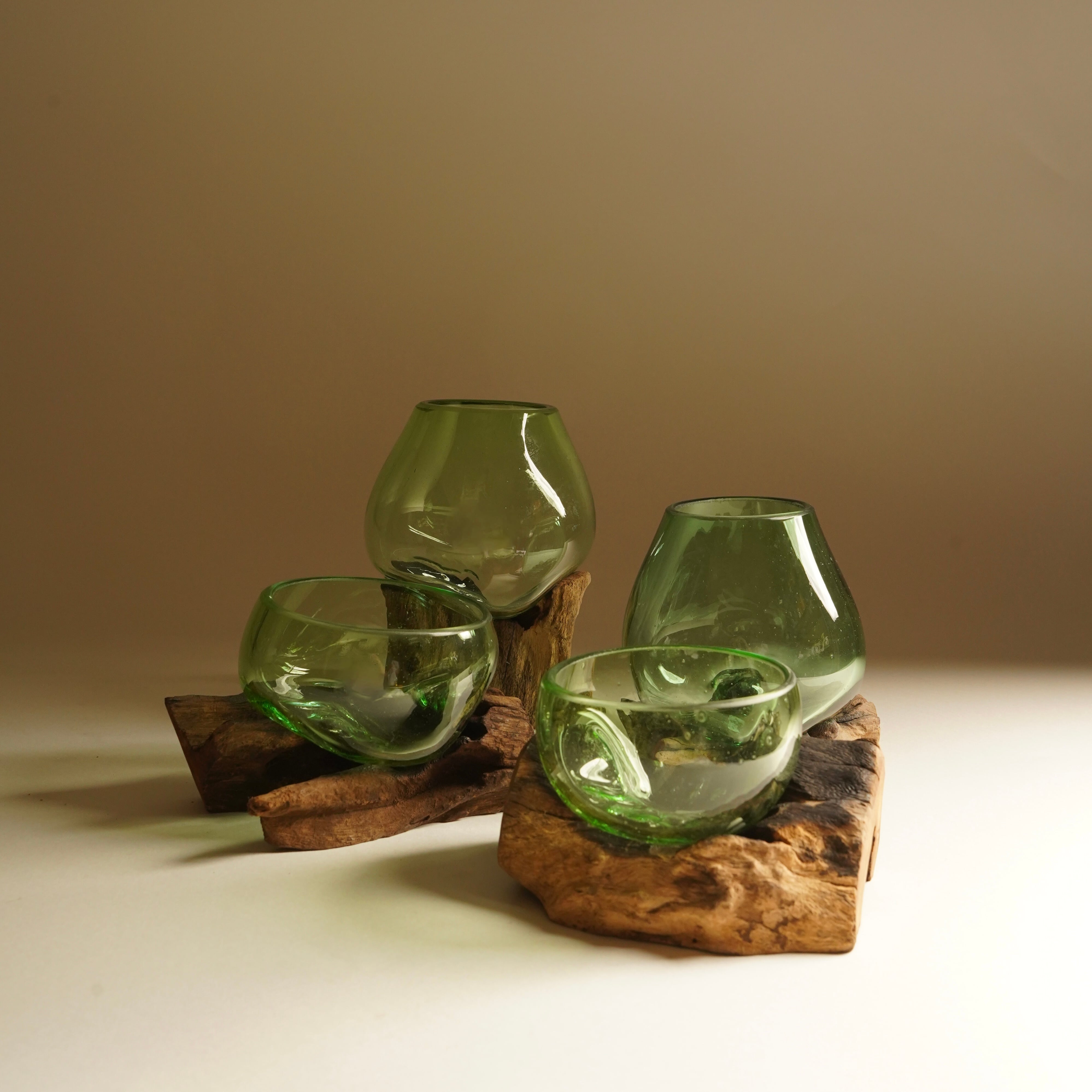 古木/手吹シリーズは、自然の根っこを使用し、個体ごとに手吹によりガラスを形成しているため、サイズ、形、色味等非常に個体差がございます。世界にオンリーワンと捉えて頂けますと幸いです。