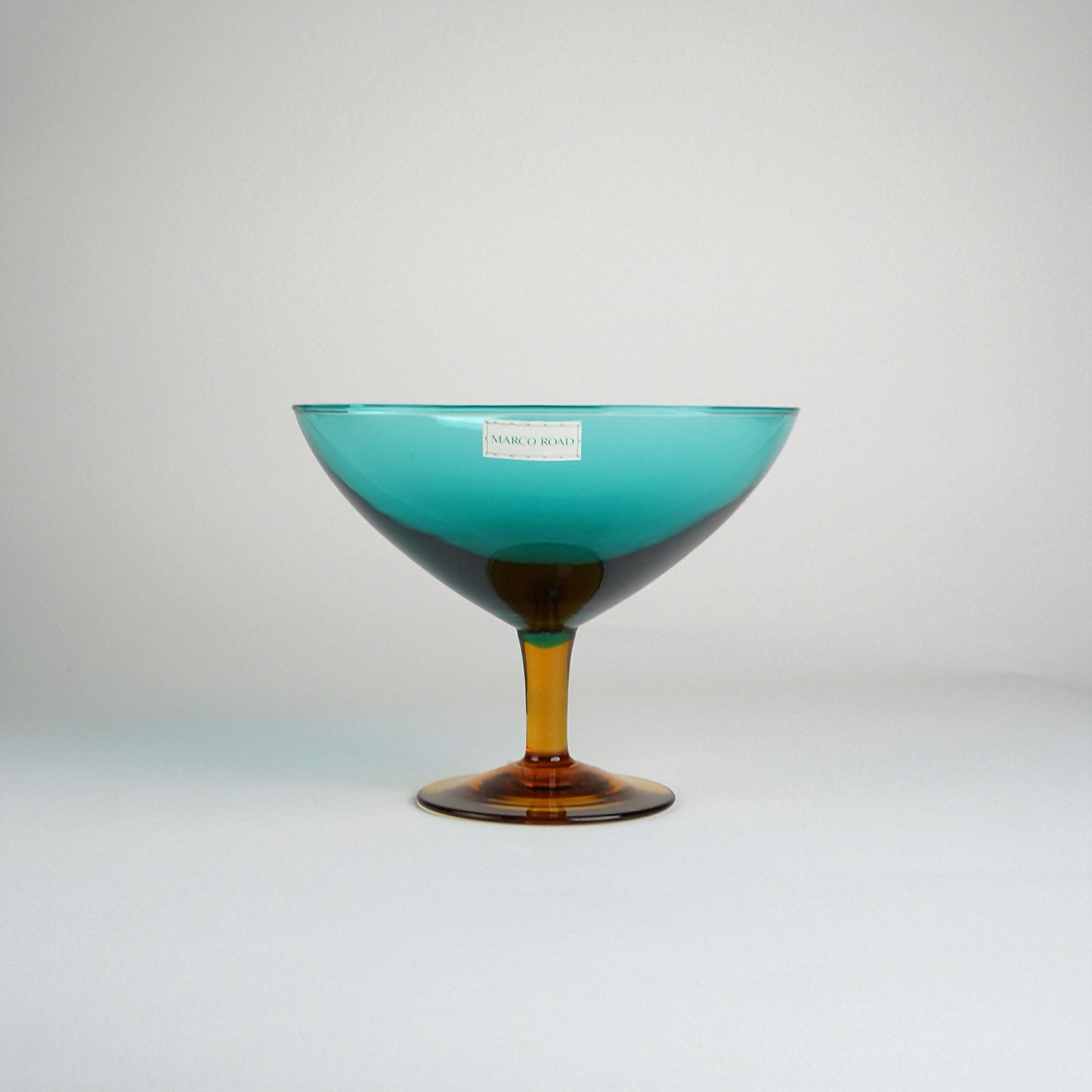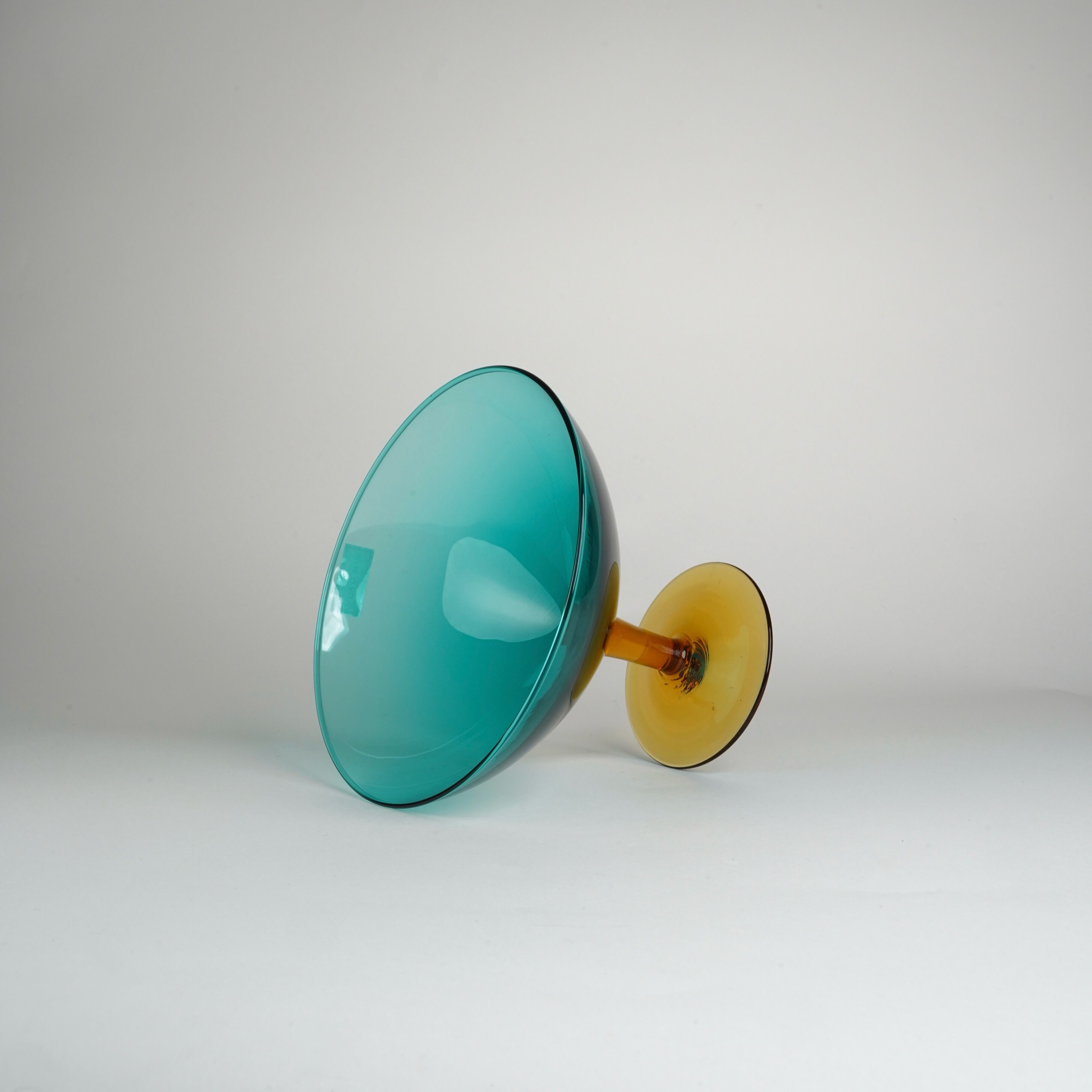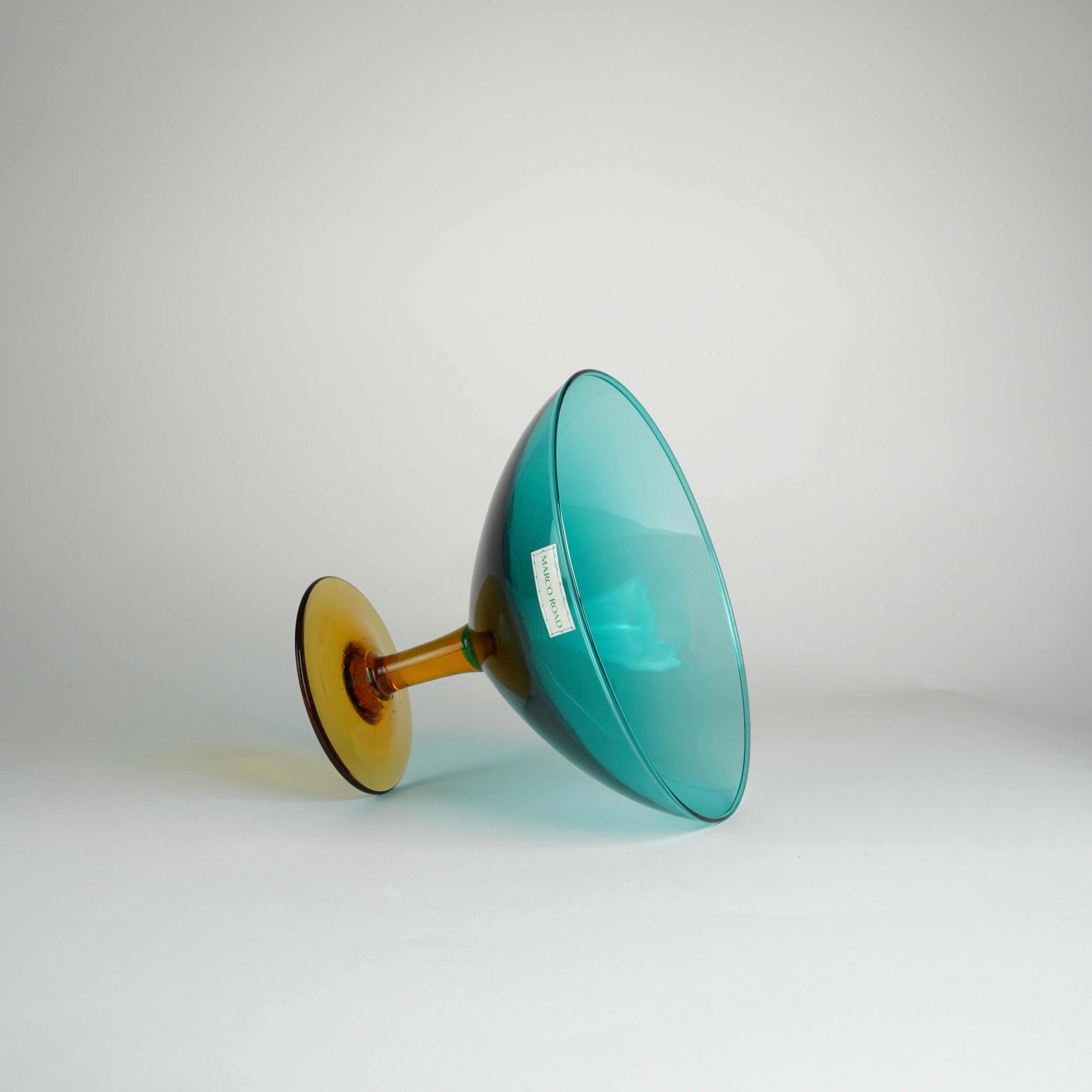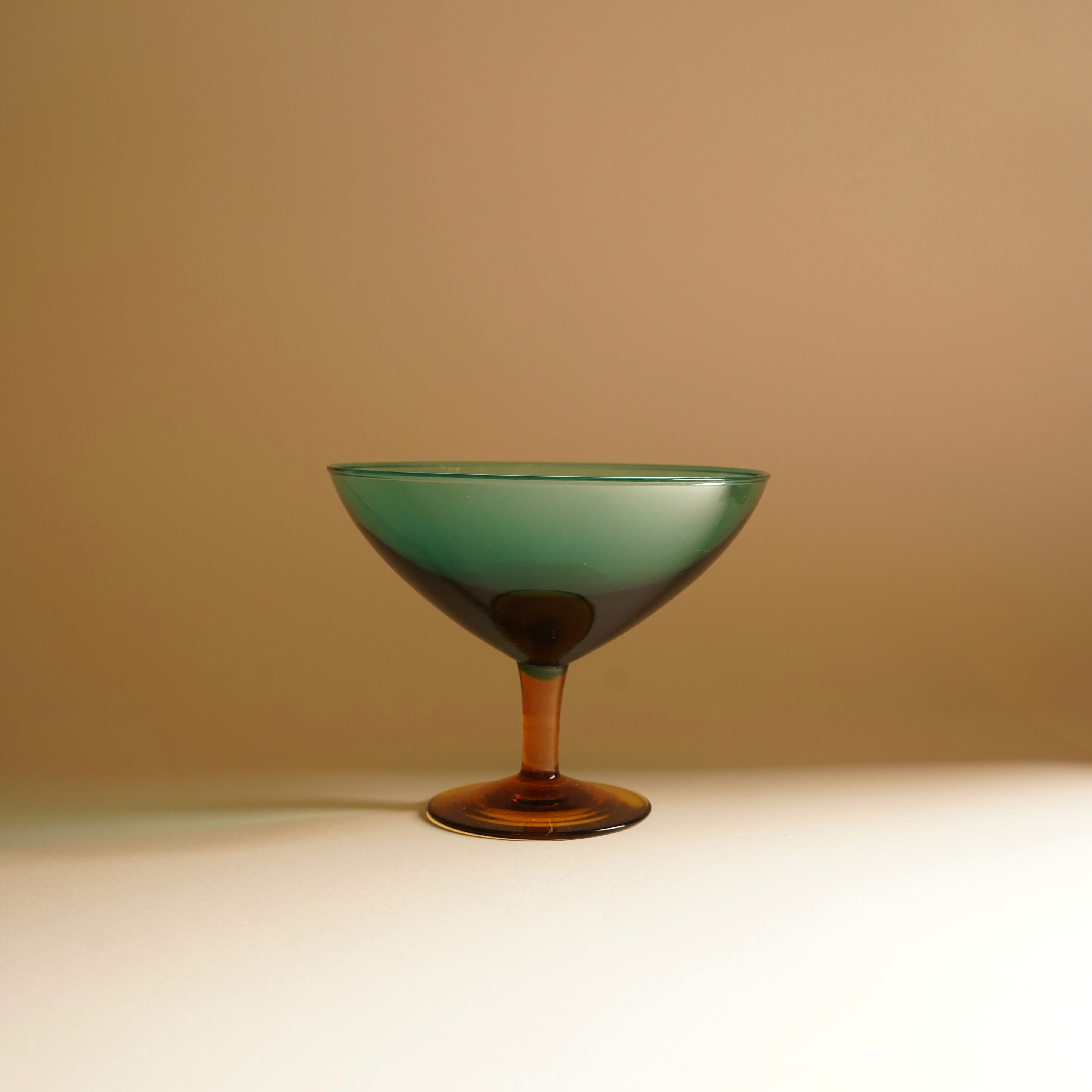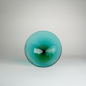 美しいエメラルドグリーンとアンバーの組み合わせが目を引くガラスオブジェ。