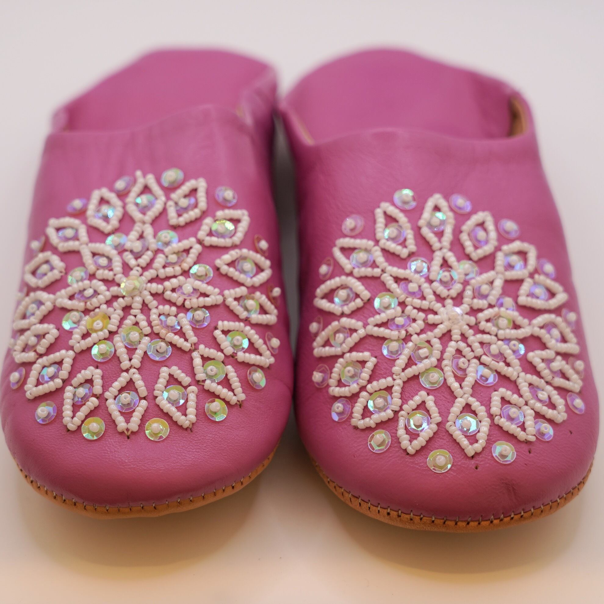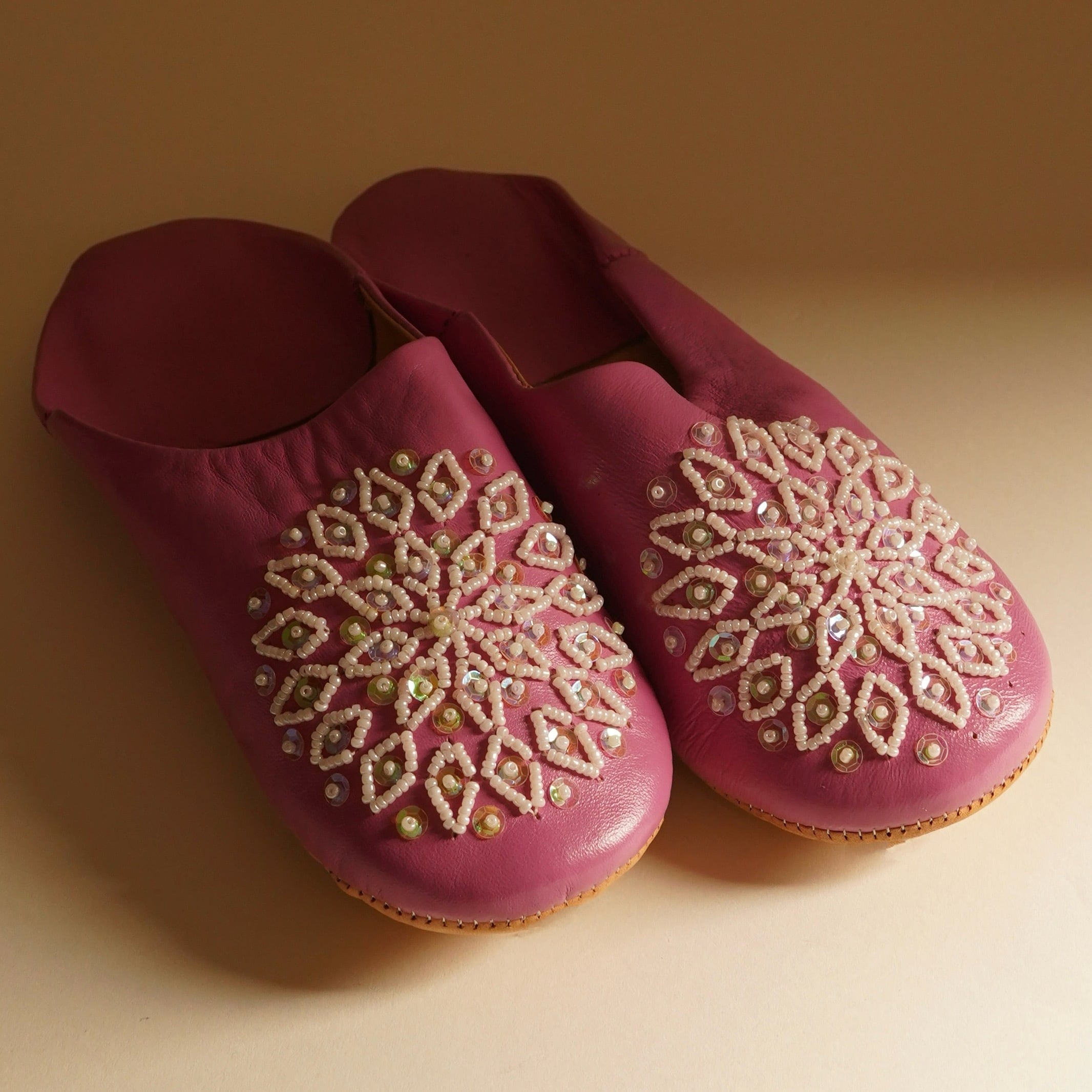 スパンコールとビーズを縫い込んだエキゾチックで華やかなバブーシュ。